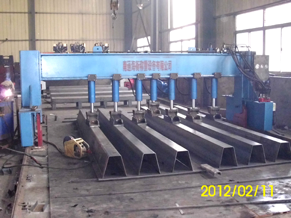 工作原理:液壓系統(tǒng)杠桿原理,根據(jù)U型梁的長(zhǎng)度,板厚度的要求對(duì)照壓力表分段施加壓力。
