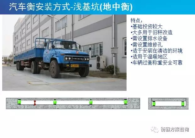 淺基坑是指汽車衡安裝在基坑里,秤臺表面與地面相平的安裝方式;